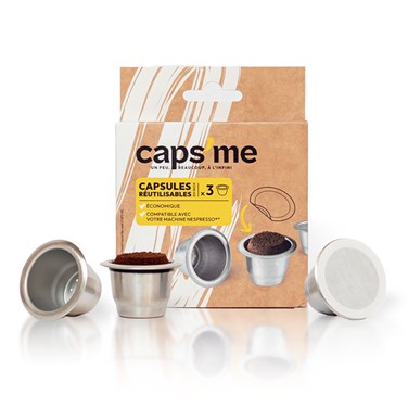 - Facile : grâce au rechargeur de capsules Caps'me, remplissez vos capsules en quelques secondes. Utilisez-les ensuite comme des capsules standards dans votre machine et dégustez un délicieux café. Elles sont compatibles avec les machines NESPRESSO®.