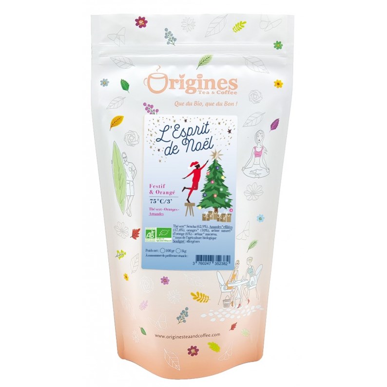 Esprit de noël - thé vert bio de noël orange macaron - sachet 100g