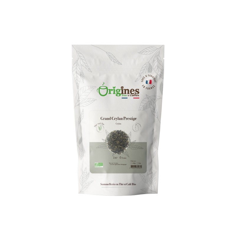 Grand ceylan prestige - thé vert bio de ceylan - sachet 100g