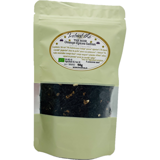 Thé Noir Orange-Epices-Safran 50g - Certifié par Ecocert France SAS FR-BIO-01. Agriculture UE non UE