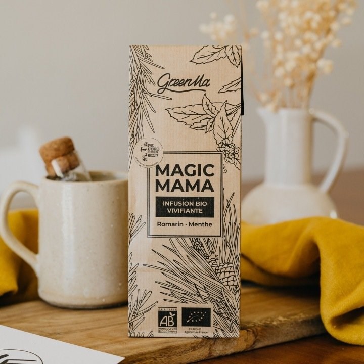 Romarin*, Menthe poivrée*, bourgeons de pin sylvestre*, serpolet*, fleurs de guimauve*. 100% origine France. *issu de l’agriculture biologique
