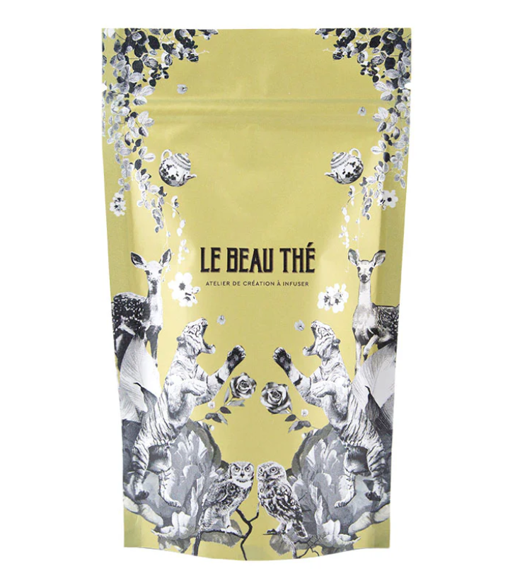 Rooibos naturel, Honeybush, fève de cacao concassée, datte, gingembre, racine de maca, canneberge, groseille.
