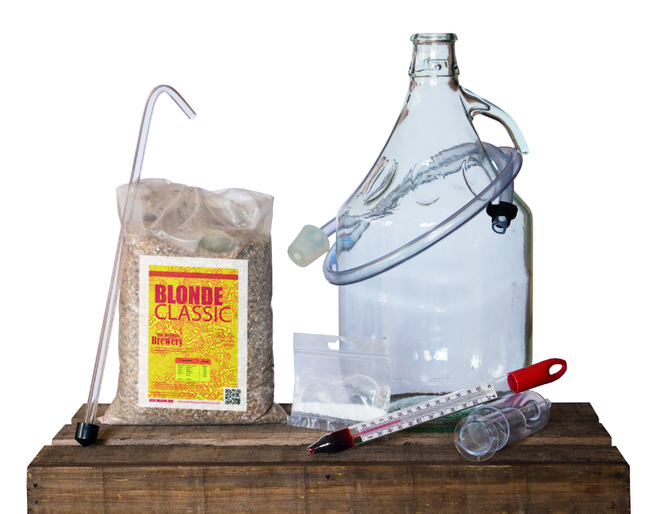 Nous sommes fiers de vous présenter notre kit de brassage de bière Blonde à faire à la maison.