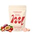 Sorbitol ; acidifiant : acide citrique ; correcteur d’acidité : bicarbonate de sodium ; extrait d’acérola (Malpighia glabra) ; arômes naturels ; pyrophosphate de fer ; colorants : rouge de betterave, riboflavine ; édulcorant : glycosides de stéviols ; vitamines B1 et B5
