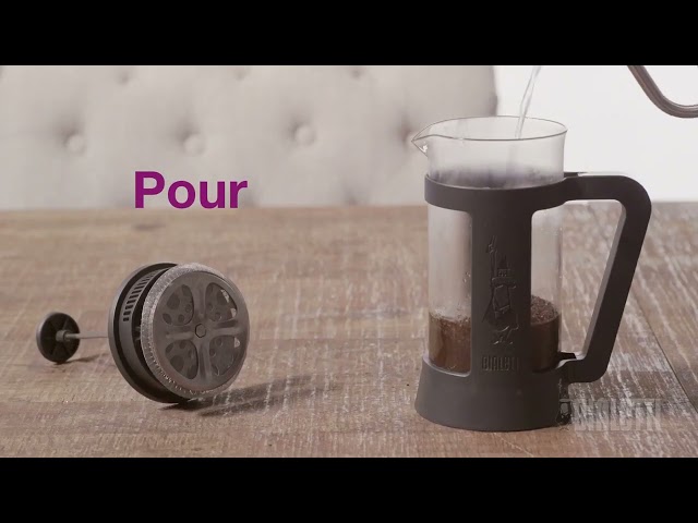 - Préparez votre café en toute simplicité : déposez dans le fond de la cafetière la quantité voulue de café moulu, puis versez l'eau bouillante. Laissez infuser entre 3 à 5 minutes, pressez et dégustez votre café bien chaud.