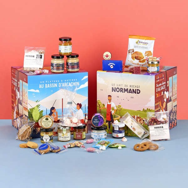 Ces produits, vous les retrouverez cachés derrière les 24 fenêtres de ce joli calendrier illustré des symboles gastronomiques de quatre de nos plus belles et plus gourmandes régions. De l'Alsace à la Normandie, en passant par le Bassin d'Arcachon et le Roussillon, embarquez pour un tour de France gourmand et végétarien en attendant Noël.