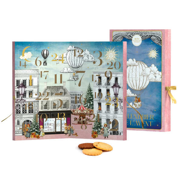 Cette année, la biscuiterie traditionnelle La Sablésienne signe un magnifique calendrier de l'Avent sous sa collection 1670 Marquise de Sablés.