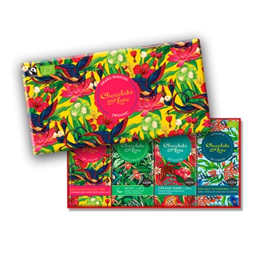 Ce coffret dévoile 4 tablettes de chocolat bio. Les fèves de cacao sont soigneusement sélectionnées et issues d'un commerce équitable. Les saveurs de ces tablettes vous invitent à découvrir des accords gourmands, qui révèlent toute la richesse gustative du cacao.