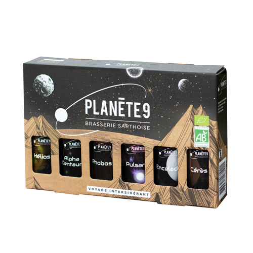Ce coffret de dégustation vous invite à découvrir toute la saveur des bières bio Planète 9. Elles sont produites localement, dans une micro-brasserie installée dans la Sarthe. Chaque bière porte un nom en rapport avec l'espace, comme une invitation au voyage et à la découverte.