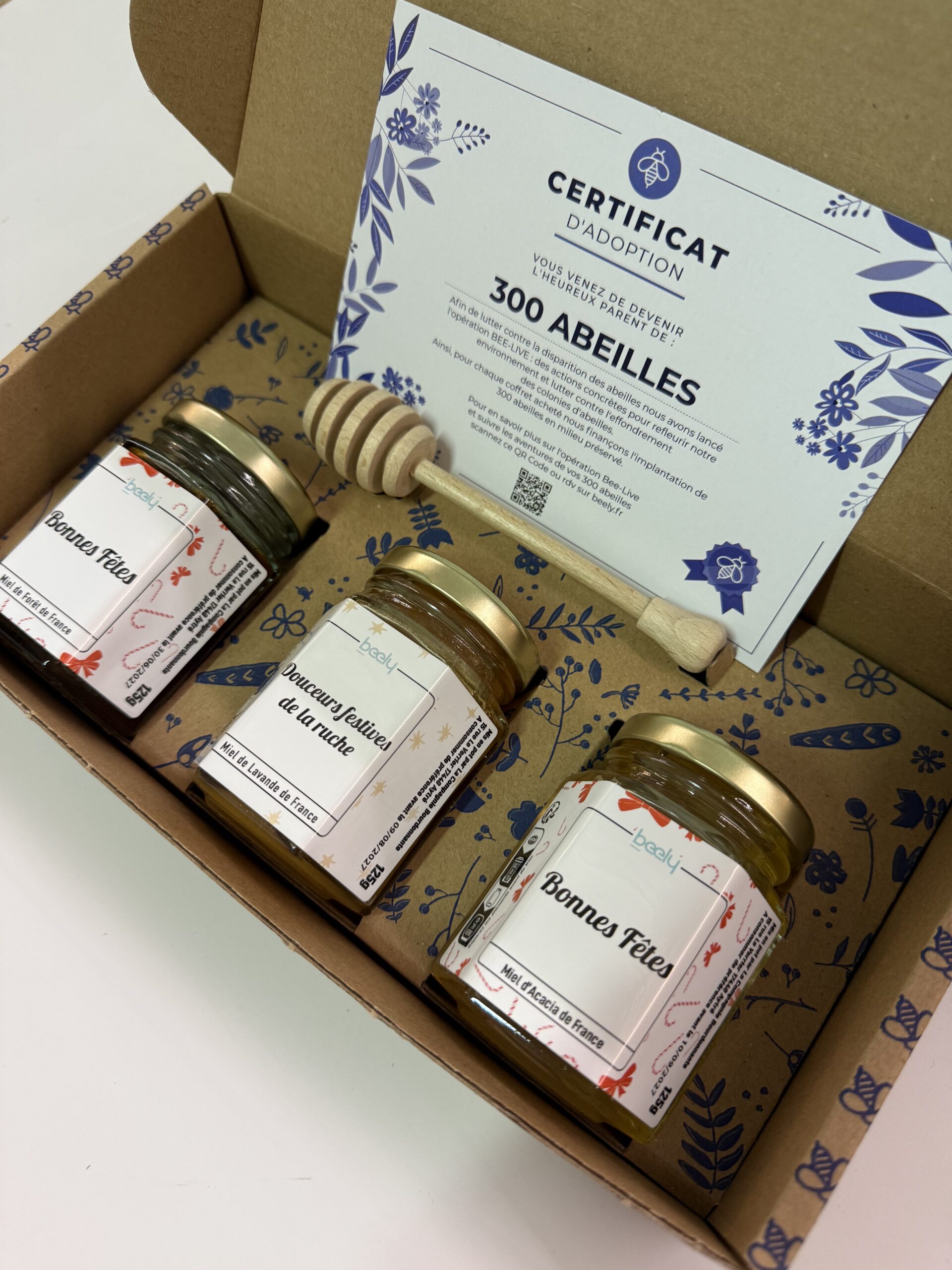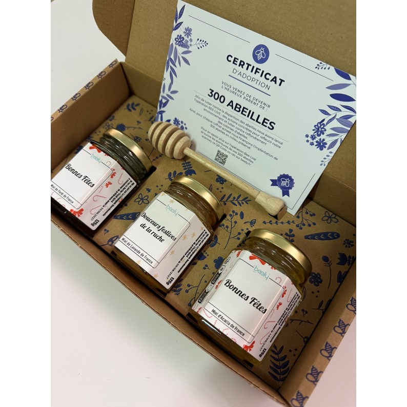 Coffret fetes 3 pots de miel