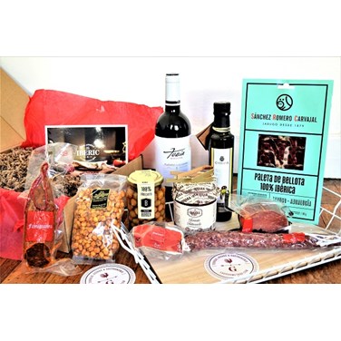 Une invitation au voyage au cœur de l’Espagne pour découvrir le meilleur de sa gastronomie et déguster LE véritable jambon bellota 100% íbérique, le Nec Plus Ultra du pata negra accompagné évidemment d'un sublime vin de la Rioja et d'autres surprises locales. Un coffret gourmand élégant idéal pour plonger au cœur de ce monde de saveurs divines où nous emportent le jambon Pata Negra de bellota. Pour ceux qui aiment l'Espagne et sa gastronomie, qui ont une petite nostalgie de leurs vacances ou qui veulent découvrir ce que nos voisins font de meilleurs, c'est un panier gourmand et élégant qui ne vous décevra pas. Livré en 24 à 48 heures maximum partout en France.