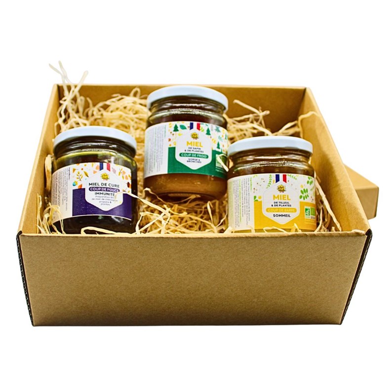 Coffret happy therapie 3 miels bio 250g