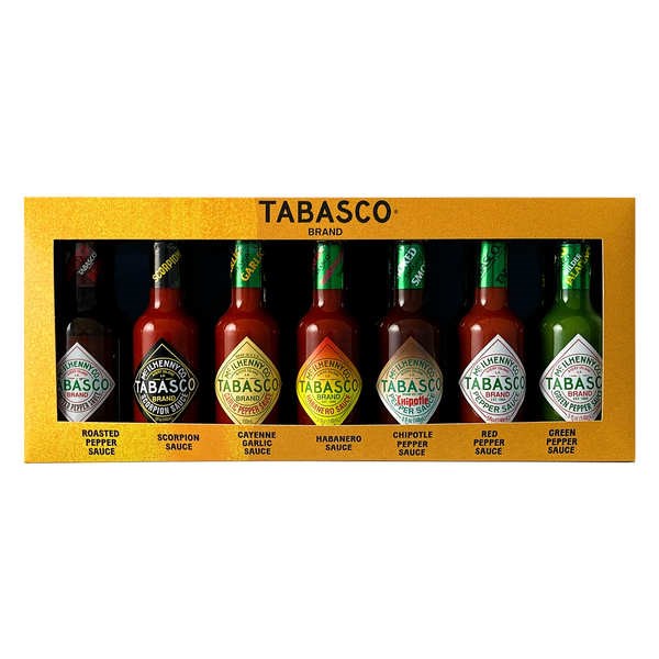 Voilà de quoi réjouir les fans inconditionnels des sauces Tabasco et des amateurs de sauces piquantes ! Avec une sélection de 7 sauces différentes, aussi emblématiques que savoureuses, c'est le cadeau parfait à offrir ou pour se faire plaisir.