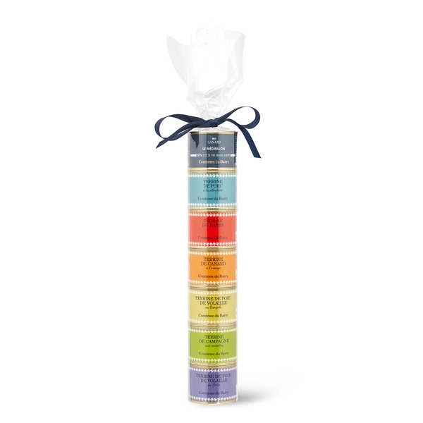 6 terrines toutes plus savoureuses les unes que les autres et un médaillon de de foie de canard, tout ça à partager autour d'un apéritif ou à offrir en cadeaux si vous voulez faire des heureux.