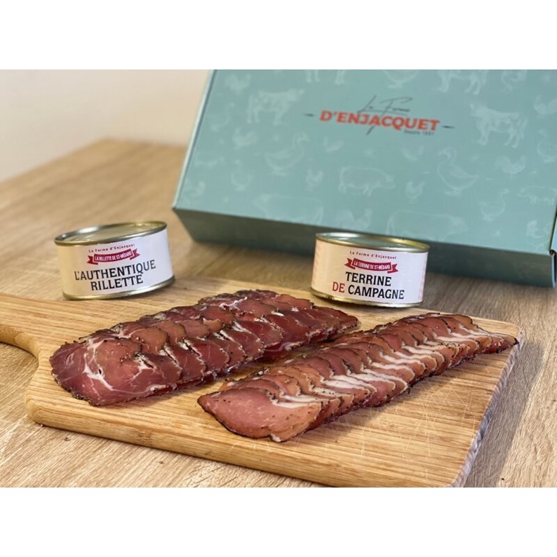 Ce coffret réunit nos meilleures charcuteries artisanales, préparées à la Ferme d’Enjacquet, dans le respect des recettes traditionnelles gersoises.