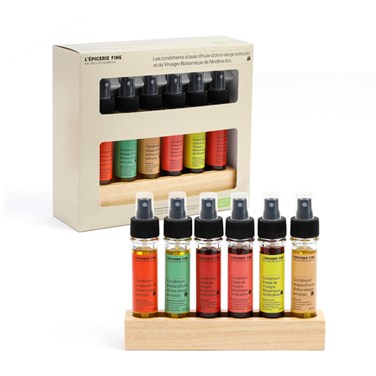 Des huiles d’olive et vinaigres balsamiques bio empreints de saveurs fruitées, acidulées ou épicées, réunis dans un coffret d’exception. D’un seul geste, sublimez vos plats de poisson d’un trait d’huile au citron, vos pâtes à l’italienne d’une pointe d’huile pimentée, et vos salades de saison de vinaigre à la figue délicieusement sucré.