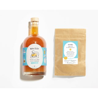 Bouteille archie brut : vinaigre de cidre avec sa mère, produit à partir de pommes issues de l’agriculture biologique (certifié par ecocert).