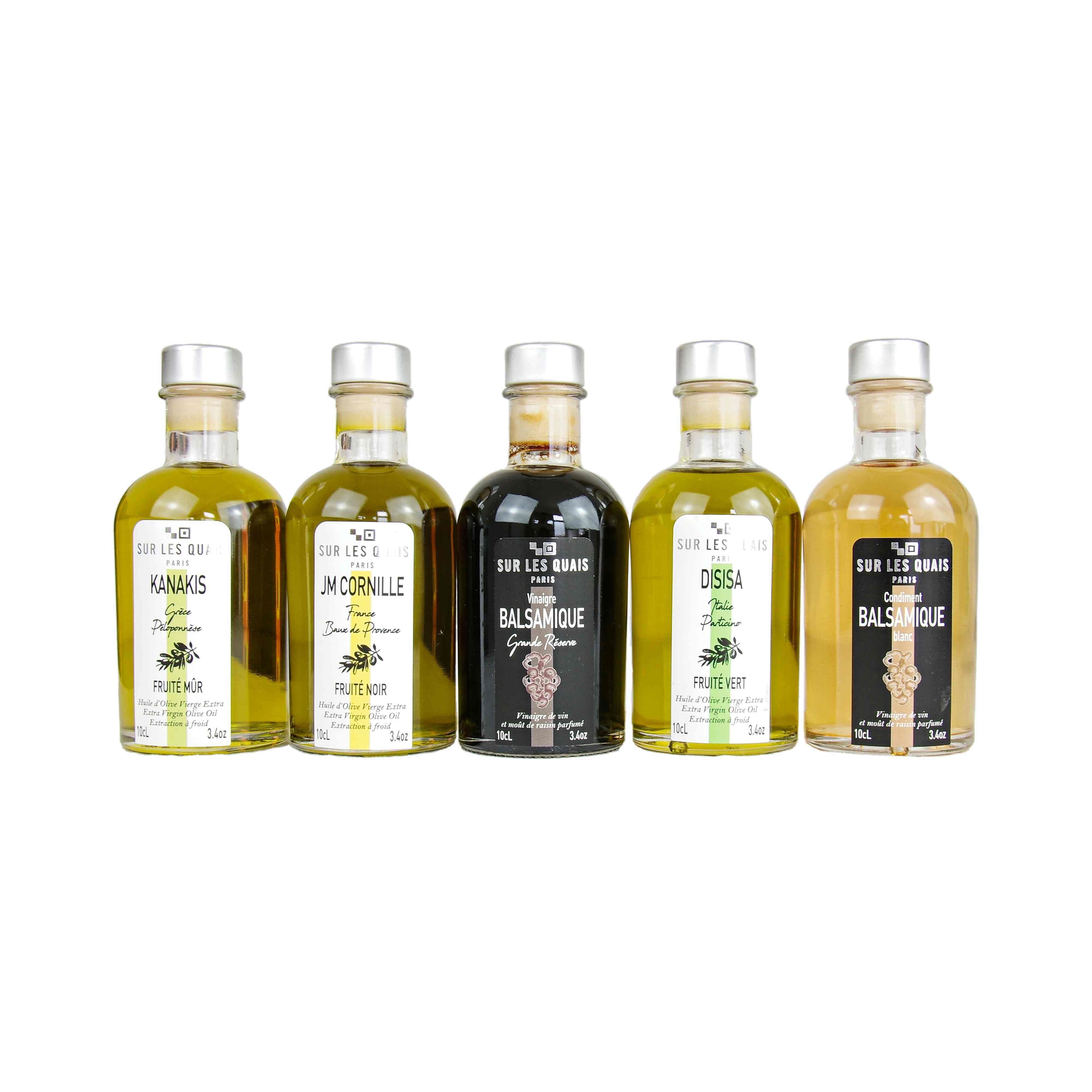 Huile d'olive Disisa, Huile d'olive Kanakis, Huile d'olive JM Cornille, Vinaigre baslamique Grande Réserve, Condiment blanc