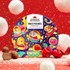 Pour habiller ces délices, l’illustrateur Valentin Pujadas a imaginé une scène cosmique unique : Père Noël, sapin, bonhomme de neige et sucre d’orge embarquent à bord de navettes hautes en couleur. La boîte en métal, sublimée par une dorure à chaud, reflète la lumière et magnifie le dessin. Un coffret qui séduit autant les yeux que les papilles.