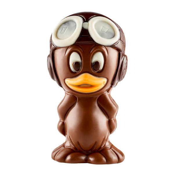 Avec sa frimousse espiègle et son bec souriant, ce caneton aviateur est prêt à atterrir dans votre collection de chocolats de Pâques, les enfants vont tomber sous sont charme c'est certain.