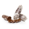 On pourrait s'y méprendre et s'attendre à déguster un bon saucisson, mais il n'en est rien ! C'est bien de chocolat dont il s'agit là. Le visuel est soigné et ménage la surprise jusqu'à la découpe...