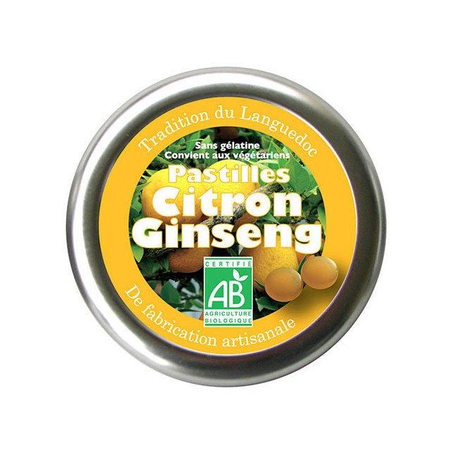 Les pastilles bio Citron ginseng de Aromandise sont fabriquées artisanalement en Languedoc selon la tradition locale.