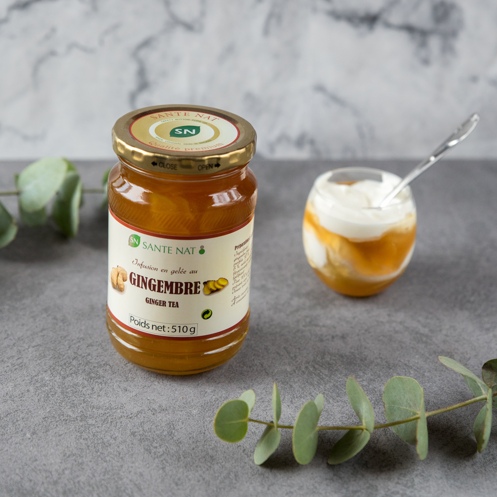 Gingembre frais de Corée, miel, extrait de gingembre, acide citrique, vitamine C, eau minérale, fructose, oligo
