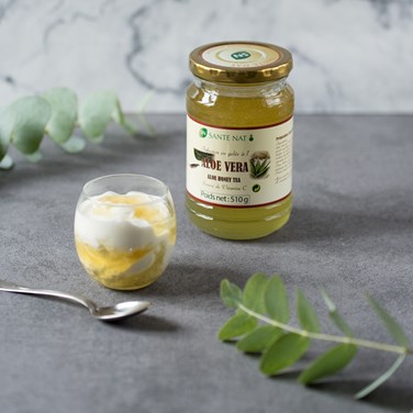Aloé vera gel, acide citrique, eau minérale, miel, vitamine C, fructose, oligo