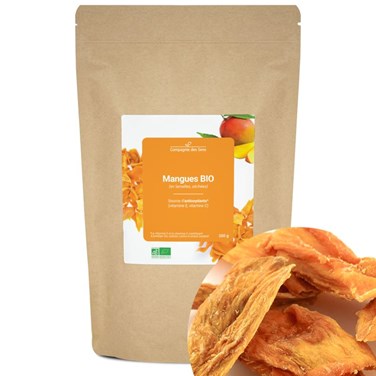 Ces Mangues en lamelles séchées sont certifiées BIO par Ecocert (FR-BIO-01). Source d'antioxydants (vitamine C, vitamine E), elles peuvent être consommées telles quelles mélangées à d'autres fruits secs, dans des préparations sucrées ou salées et à tout moment de la journée en tant qu'en-cas sain. Il est également possible de les tremper ou brumiser pour retrouver le fruit ""frais"" et moelleux . Ces Mangues sont vendues dans un sachet hermétique pour préserver tous leurs bienfaits et les utiliser facilement au quotidien.