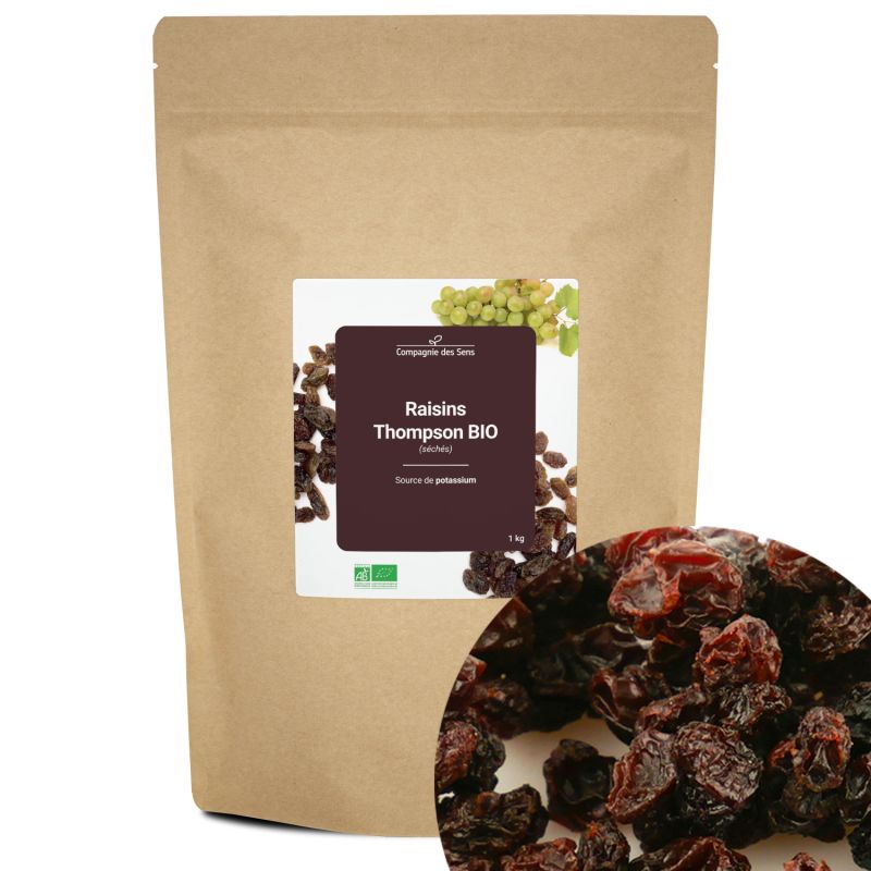 Raisins thompson bio - 1kg (séchés) - source de potassium