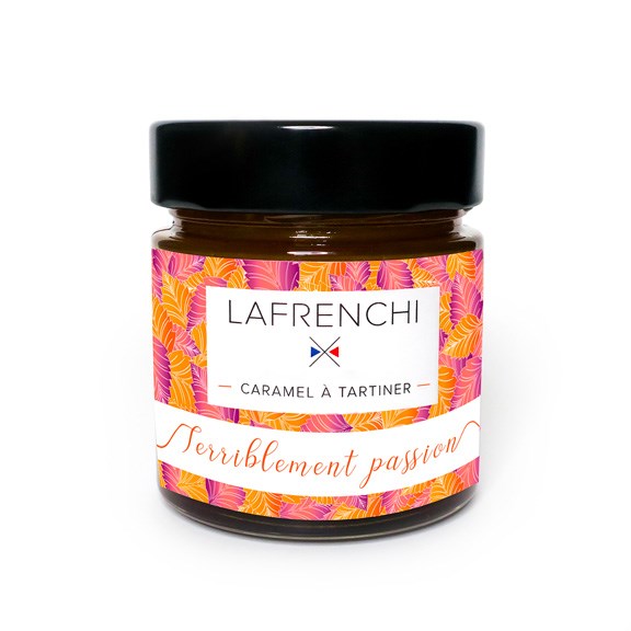 Sucre, purée de fruit de la passion (26%), crème (lait), beurre AOP Charentes-Poitou (lait), fleur de sel